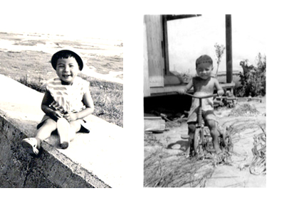 左.....3歳の頃.....ぼろぼろだった写真がデジタル処理のおかげでこんなにきれいになりました。